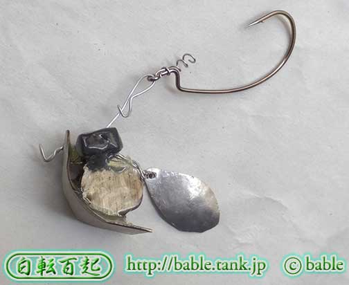 前ページで作ったなんちゃってバフィンVer.01はとりあえず作ったものでした。先般藻に引っ掛かった際に藻をカットして抜け出すことを目的に作った ジグヘッドVer.03【海藻カッター】自作 が藻のキツいところでも効果があったので(そう思っただけ)、ウィードカッターをVer.01に装備することにしました。これがVer.02です。