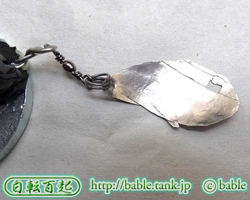 座金の重さを計測したら、15gあったんです。2枚重ねで使おうかとも思いましたが、ロックフィッシュ狙いなので15gでいってみよう、と、座金にステンレス針金とスポンジを接着しました。