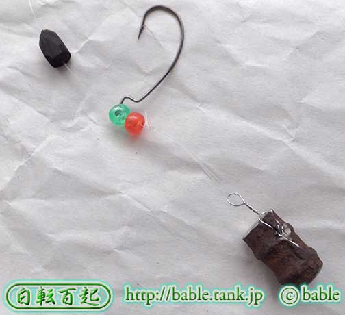ダウンショットリグでググっておりましたら「爆釣リグ!(自称w)」というページに出会いました。これを作ってみましたが、わたくし初心者ですのでまだ釣果はありません。リグのロストも多い下手くそなのです。ちょうどロストしてもいい素材があったので、あまの式を参考にフワ~ッと落ちていくダウンショットリグを作りましたので紹介致します。